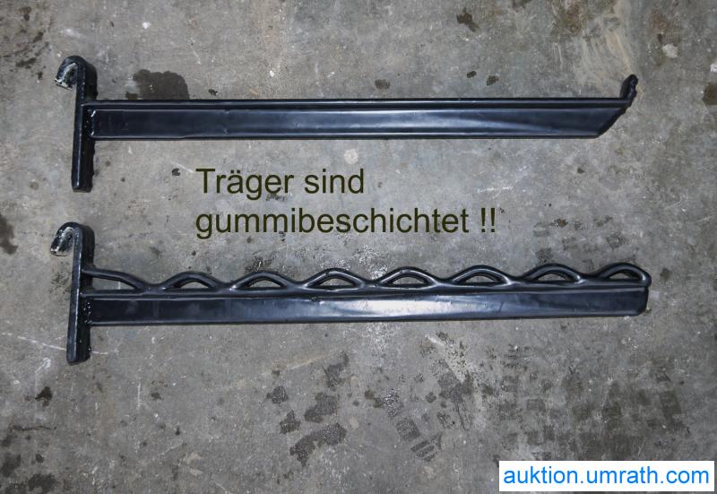 - beliebig steckbare Stahlträger, 18 Stück eben mit Aufbiegung am vorderen Rand, 6 Stück mit Wellenauflage - ALLE mit Gummi beschichtet